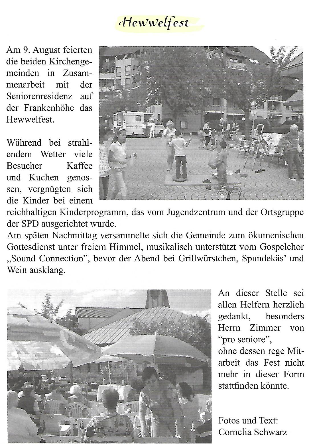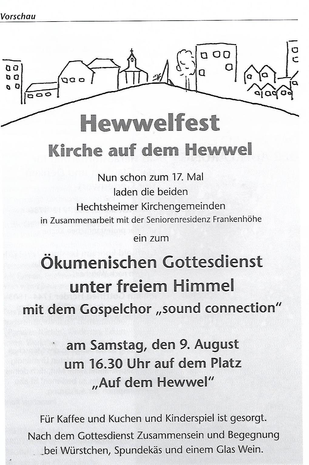 9. August: Gottesdienst im Rahmen des Hewwelfestes auf der Frankenhöhe