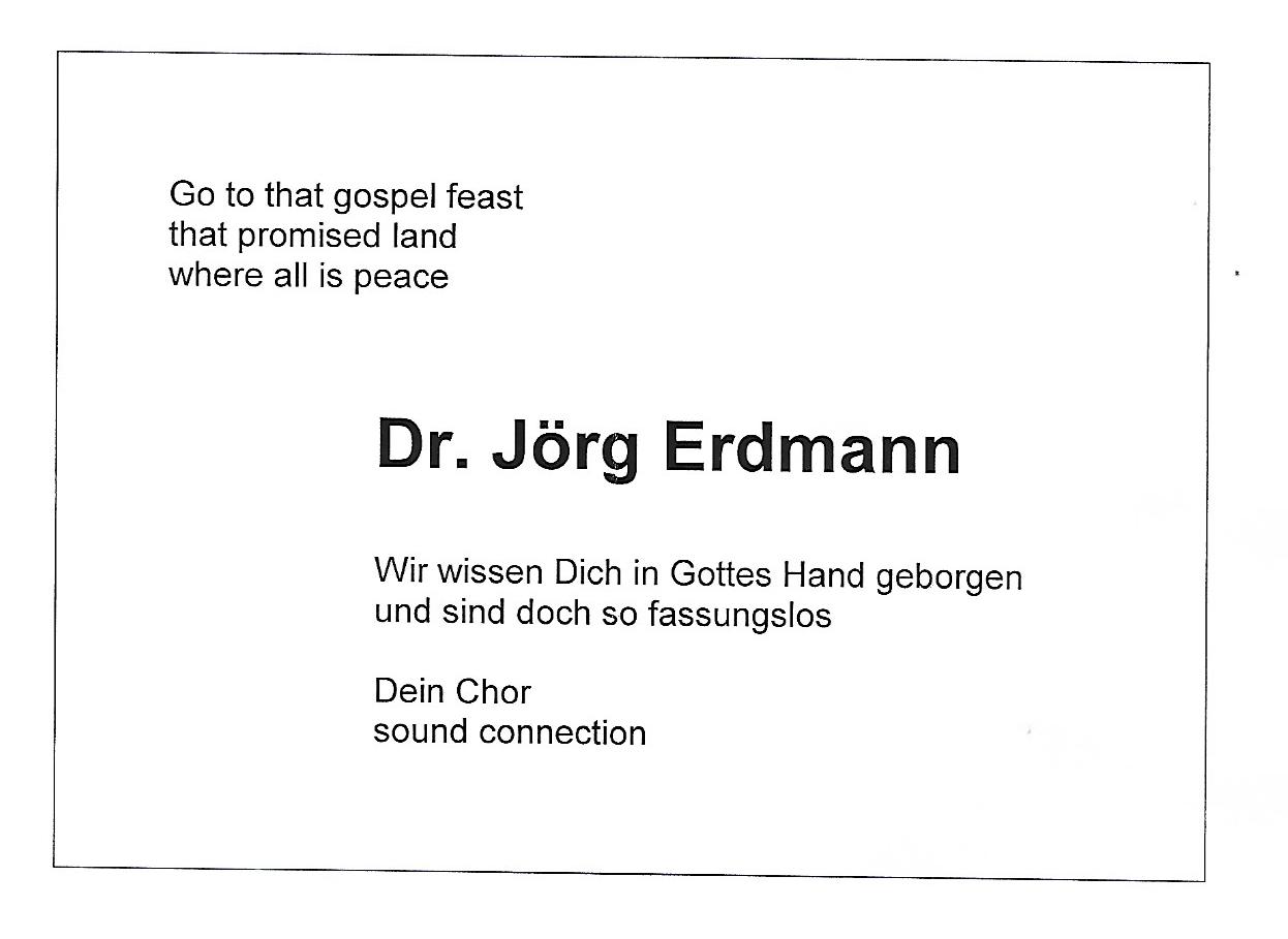 2. Februar: Trauergottesdienst für Dr. Jörg Erdmann