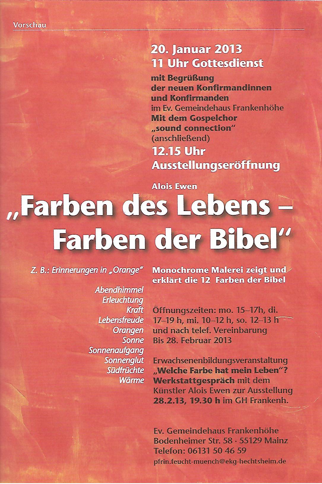 20. Januar: Gottesdienst mit Vernissage im Gemeindehaus auf der Frankenhöhe