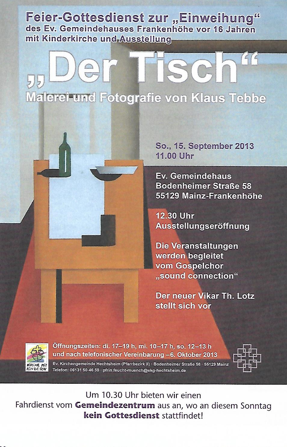15. September: Jubiläum 16 Jahre Gemeindehaus auf der Frankhöhe mit Vernissage "DerTisch"