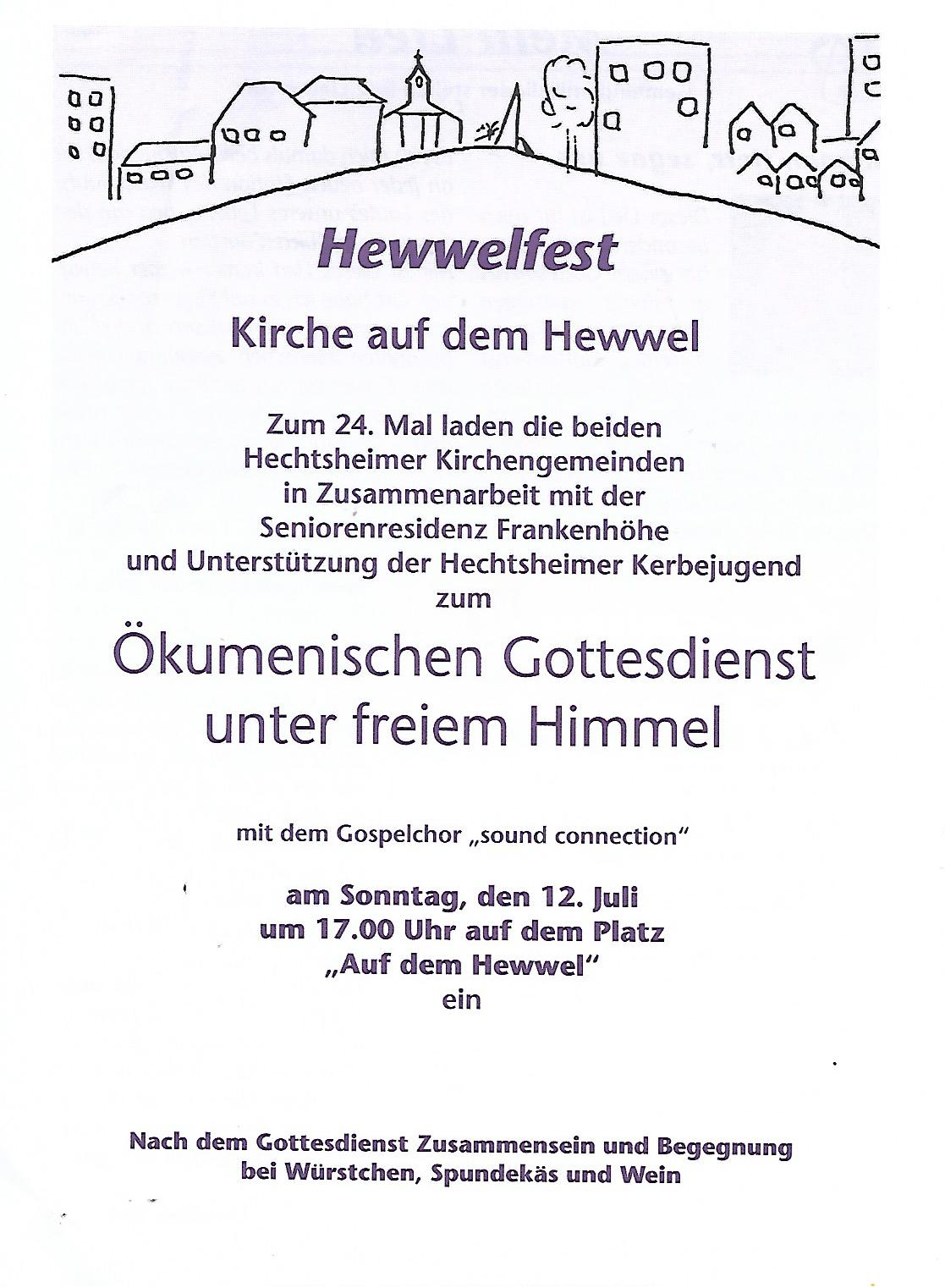 12. Juli: Gottesdienst im Rahmen des Hewwelfestes auf der Frankenhöhe