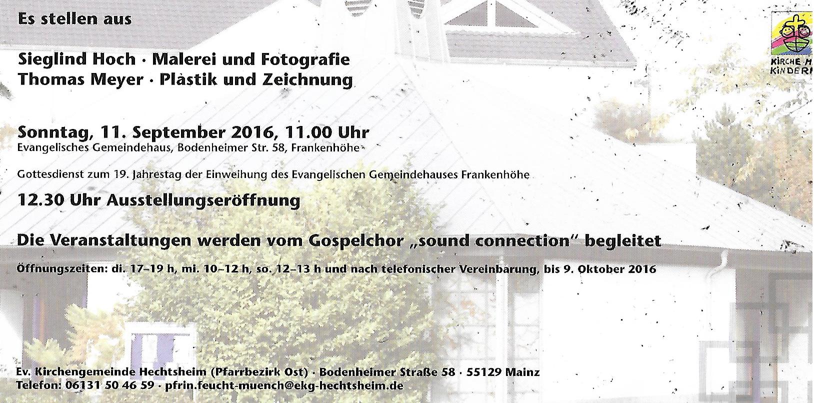11. September: Jubiläum und Vernissage im Gemeindehaus auf der Frankenhöhe