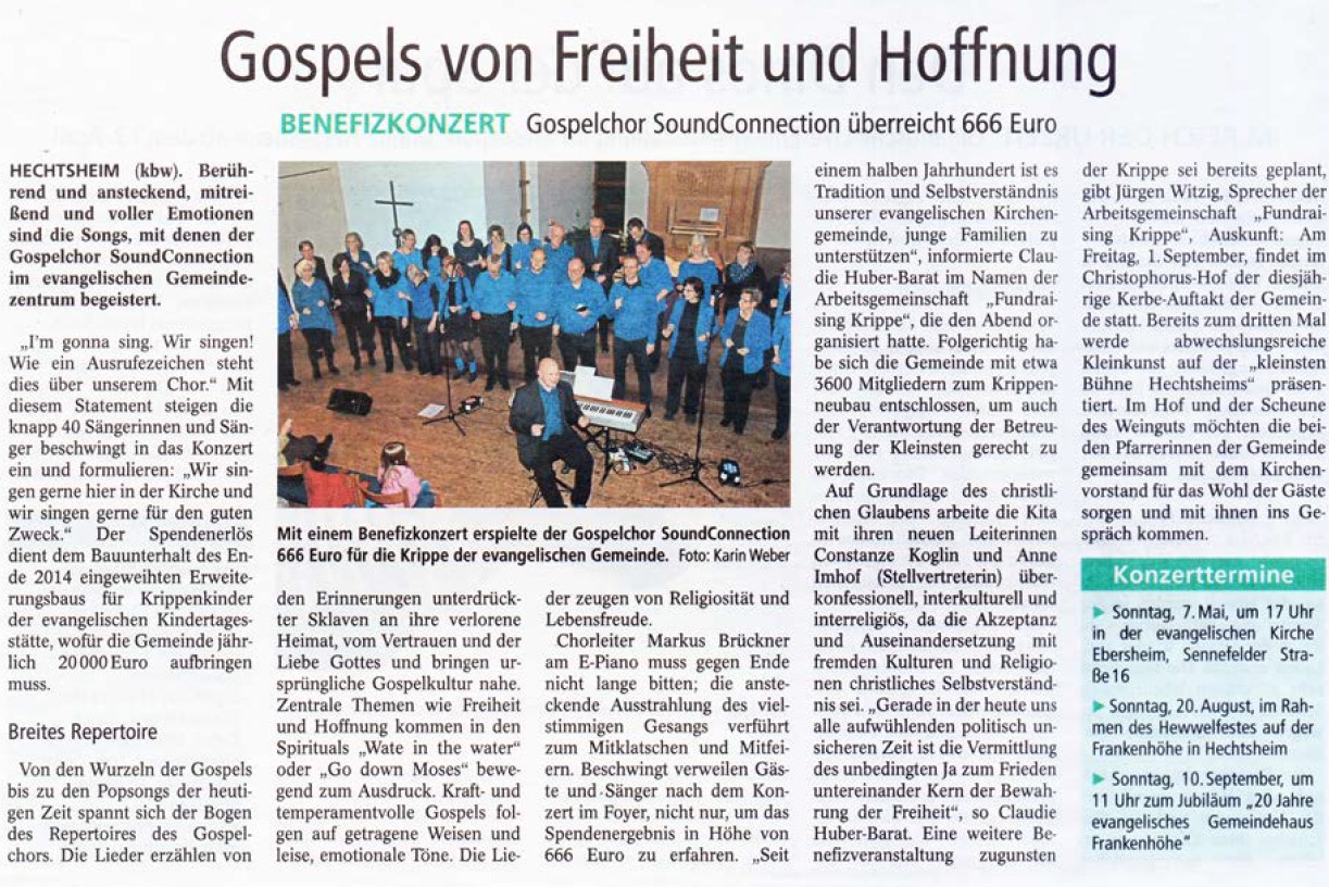 Mai: Konzert in der evangelischen Gemeinde in Ebersheim. 200 € der