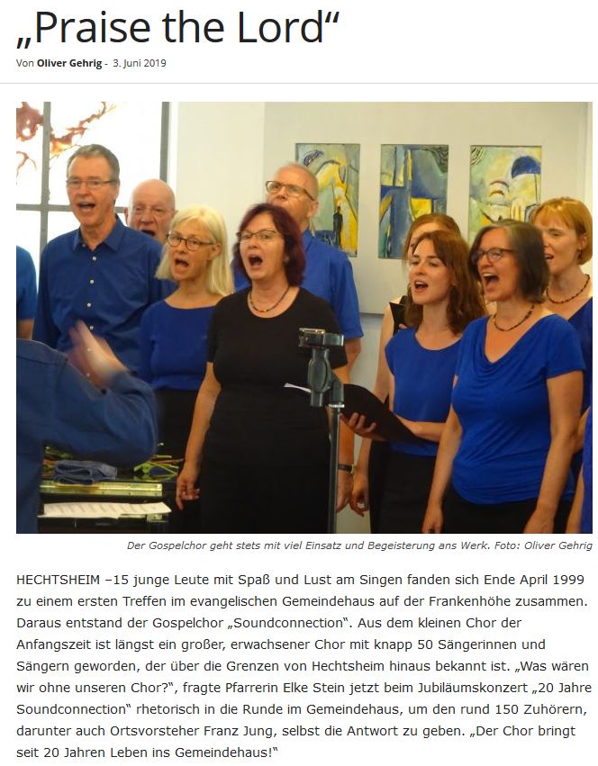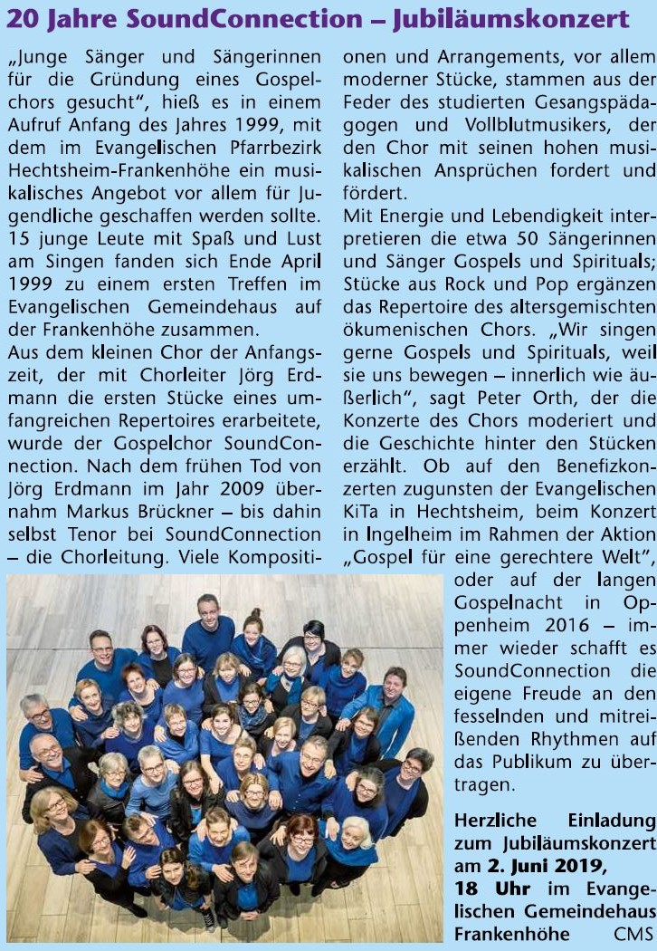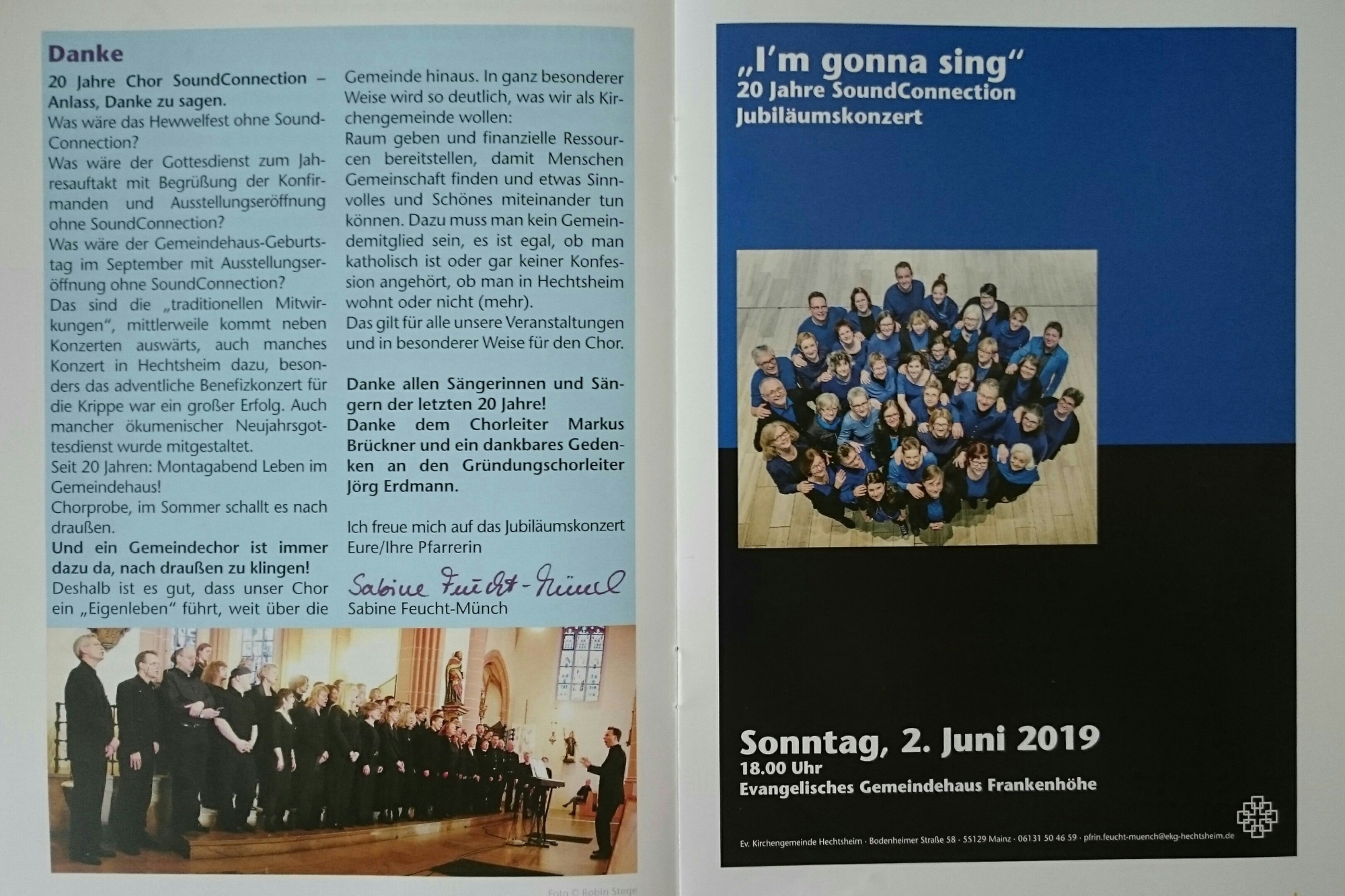 2. Juni: Jubiläumsgottesdienst 20 Jahre SoundConnection