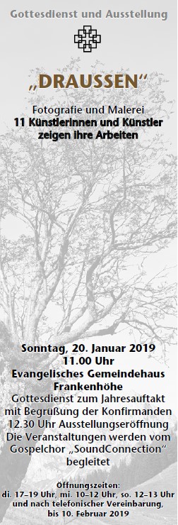 20. Januar: Ausstellung "Draussen" Gottesdienst und Vernissage im Gemeindehaus auf der Frankenhöhe in Mainz-Hechtsheim